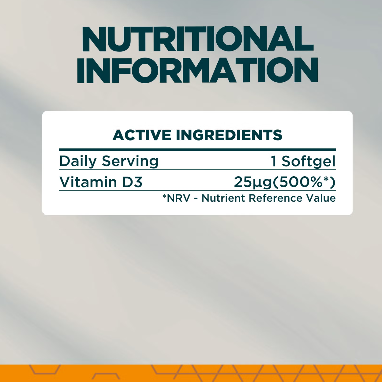 - ترکیبات: روغن گلرنگ، پوسته کپسول (نشاسته اصلاحشده، مرطوبکننده (گلیسرول)، عامل ژلکننده (کاراگینان)، تنظیمکننده اسیدیته (کربنات سدیم))، ویتامین D3.