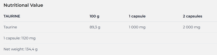 - ۱۰۰۰ میلیگرم تورین در هر کپسول