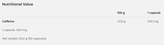 کافئین، مالتودکسترین، کپسول ژلاتینی (ژلاتین، اکسید آهن رنگی)، منیزیم استئارات به عنوان حجم دهنده، سیلیکون دی اکسید به عنوان ضد کلوخه شدن.
