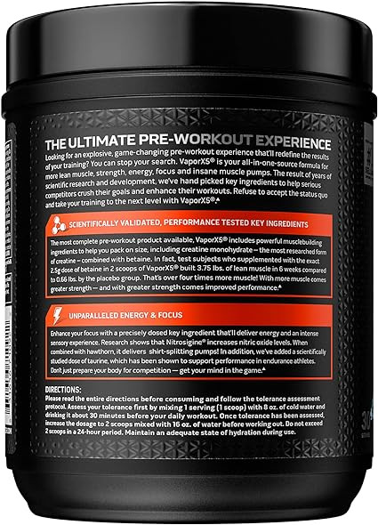 به دنبال افزایش عملکرد تمرینی خود و ارتقای تناسب اندام خود به سطح بعدی هستید؟ MuscleTech Vapor X5 ممکن است همان چیزی باشد که شما نیاز دارید! این مکمل قبل از تمرین به طور ویژه برای کمک به افزایش انرژی، تمرکز و استقامت طراحی شده است، بنابراین می توانید در سخت ترین جلسات تمرینی خود به قدرت برسید. نیتریک اکسید را با و اهداف کلی تمرین خود را با این ترکیب قدرتمند از مواد تشکیل دهنده، از جمله کافئین، بتا آلانین و تورین تقویت کنید، Vapor X5 می تواند به شما کمک کند محدودیت های خود را پشت سر بگذارید و به اهداف تناسب اندام خود برسید. چه یک ورزشکار باتجربه باشید و چه تازه شروع به کار کرده اید، MuscleTech Vapor X5 می تواند کلیدی برای باز کردن پتانسیل کامل شما در باشگاه باشد.