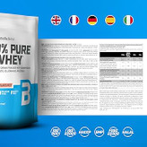 پروتئین وی ۱۰۰٪ خالص بایوتک آمریکا، یک پروتئین وی عالی غنی شده با آنزیم بروملین، اسیدهای آمینه اضافی، بدون گلوتن، آسپارتام، مواد نگهدارنده و شکر اضافه شده است. پروتئین وی ۱۰۰٪ خالص برای ورزشکاران و همچنین افراد عادی که میخواهند رشد عضلات را تسریع کنند، تمام اسیدهای آمینه لازم را برای عضلات فراهم کنند، عملکرد ورزشی خود را به حداکثر برسانند، از دریافت کافی پروتئین با کیفیت بالا در روز اطمینان حاصل کنند و از ریکاوری پس از تمرینات سخت پشتیبانی کنند، مناسب است. تأمین مواد مغذی با کیفیت بالا برای عضلات برای عملکرد طبیعی، رشد و نگهداری عضلات ضروری است. مانند خودمان، عضلات ما نیز دوست دارند "خوب غذا بخورند". آنها و خودتان را با پودر پروتئین وی ۱۰۰٪ خالص خوشمزه و خامهای لوس کنید!