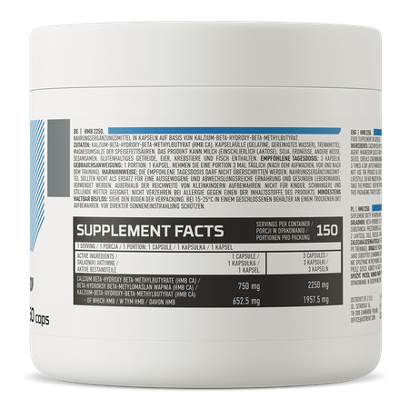 - منبع HMB - یک وعده مکمل غذایی 750 میلی گرم کلسیم بتا هیدروکسی بتا متیل بوتیرات را برای بدن فراهم می کند.